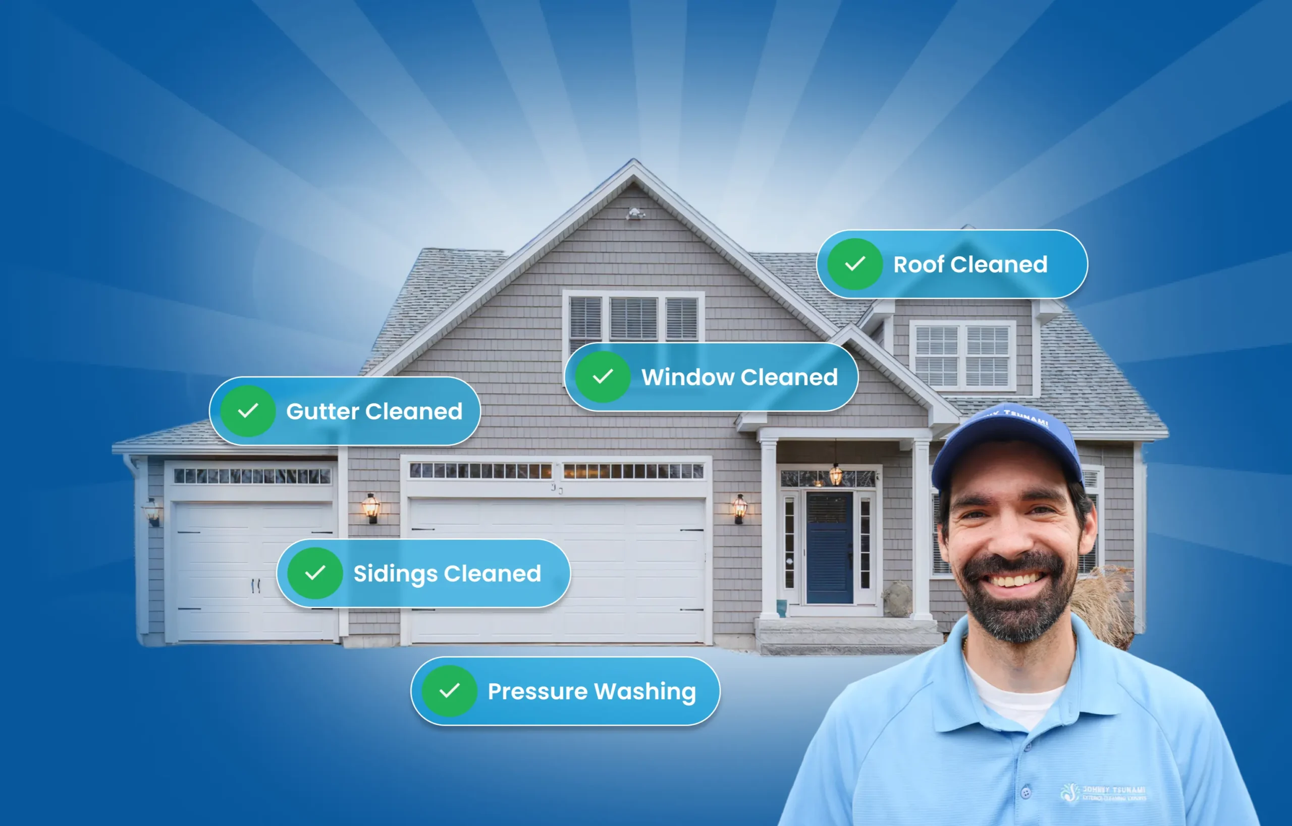 Enjoy year-round exterior cleaning, priority booking, and the peace of mind that comes with Johnny Tsunami’s highest level of service